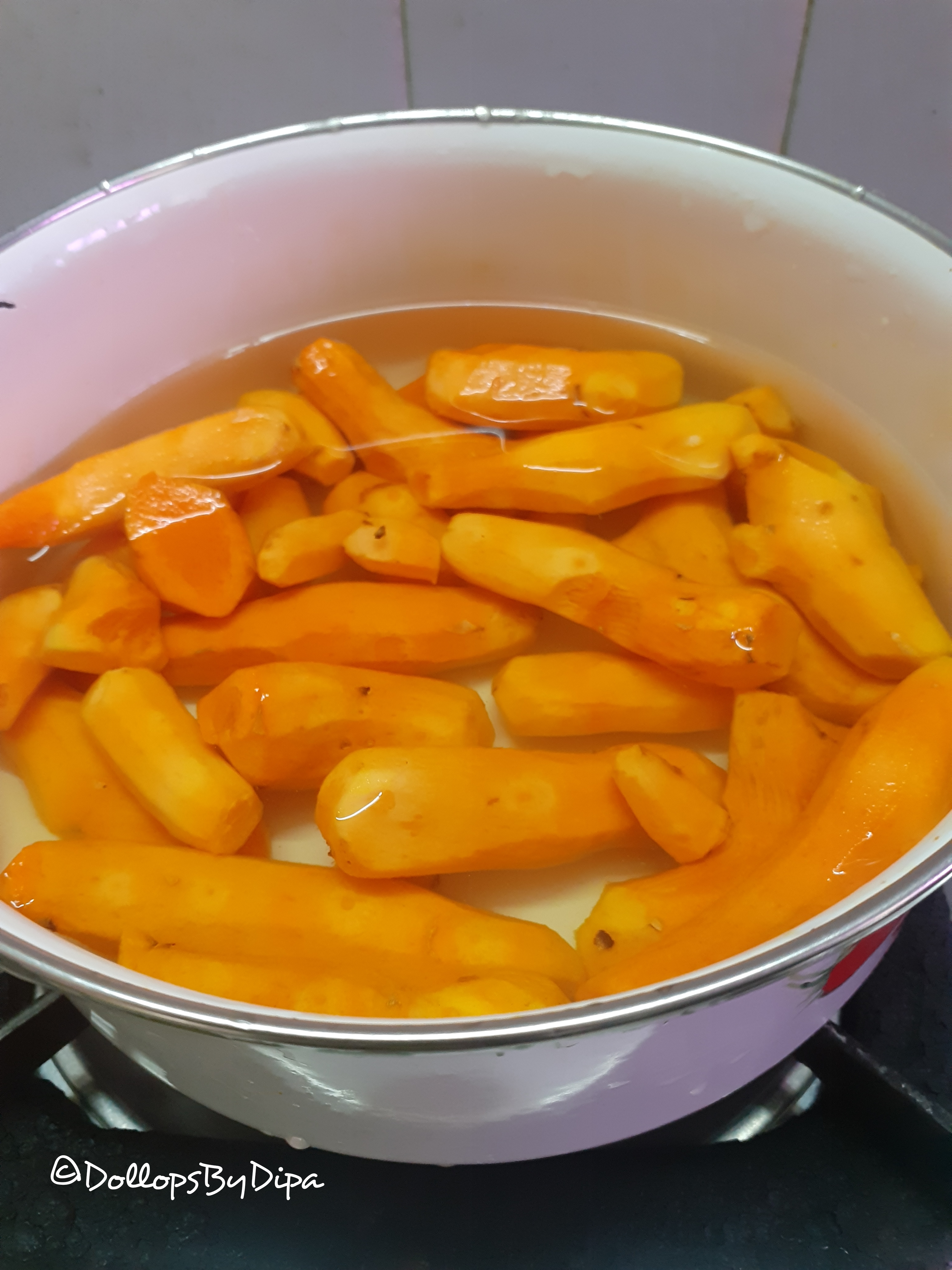 Raw turmeric roots are available in abundance in winter. We generally used it in fresh pickle, juices etc. Raw turmeric curry/sabzi id popular in Rajasthan and North Gujarat. This winter special delicacy is specially served in marraige or occasions in winter. This sabzi is always prepared in ghee.