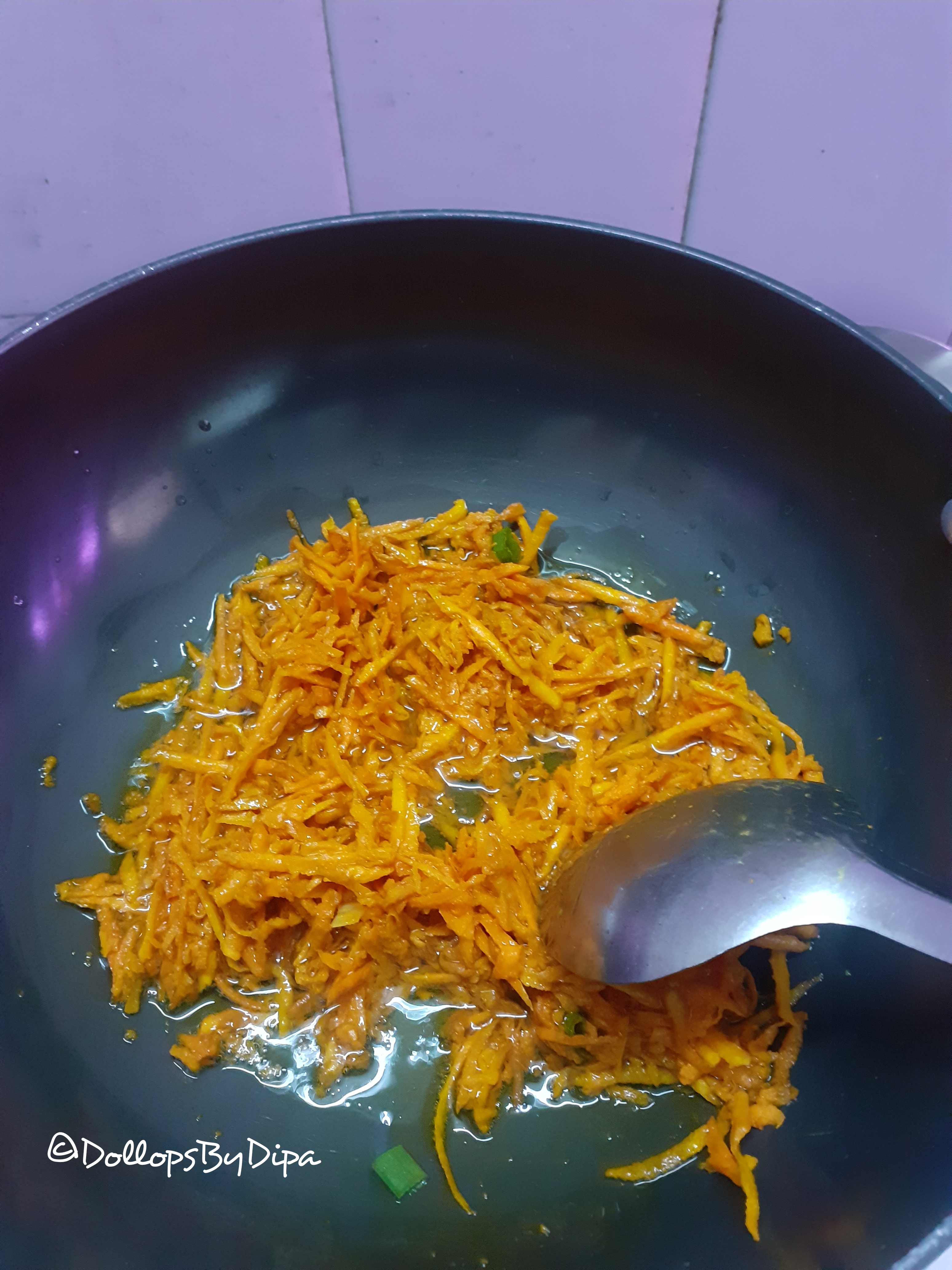 5. Now it’s time to add spices, salt and jaggery. Mix well and sautĂ© for a while.
