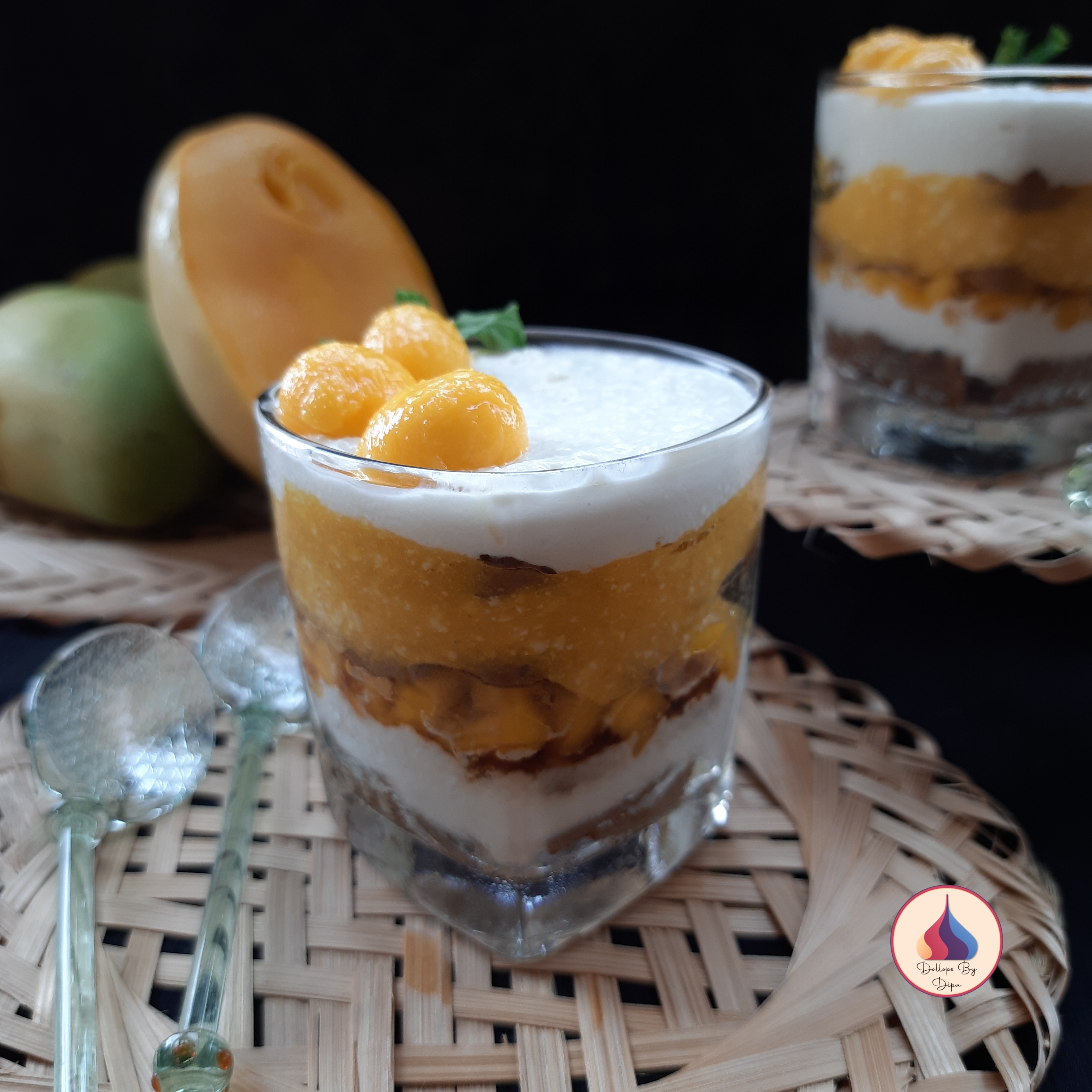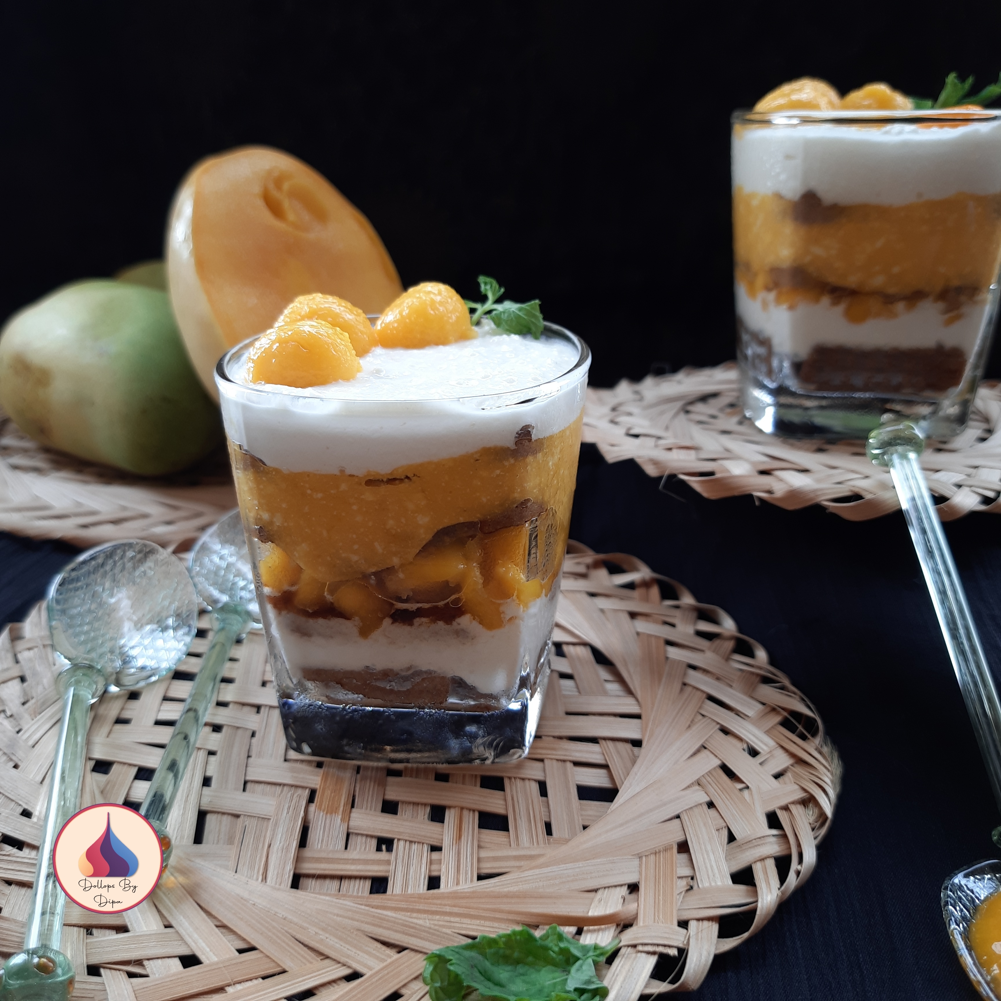 - Lastly place biscuit and then add plain cottage cheese mixture. Garnish with mango dices.