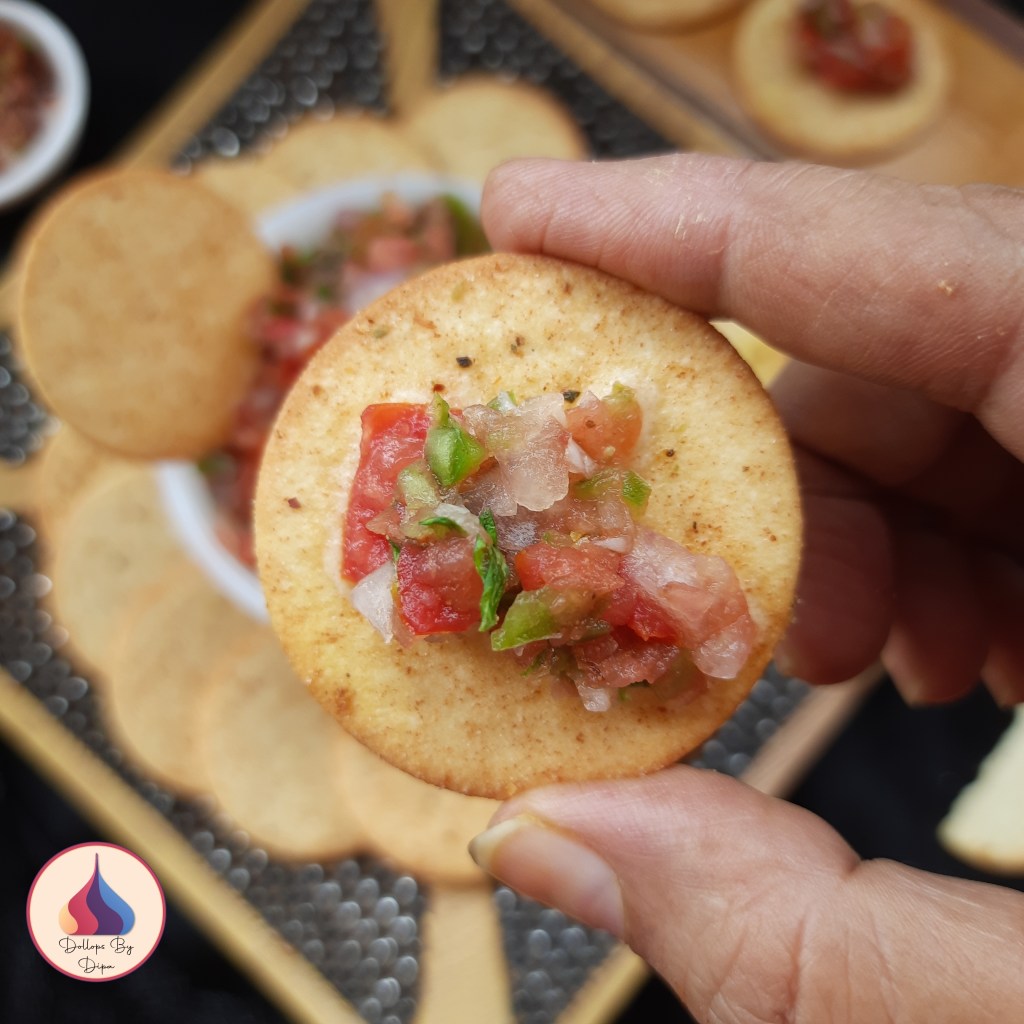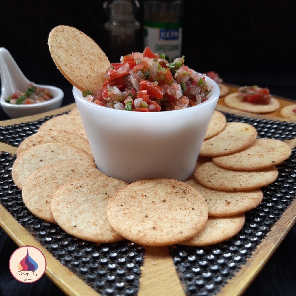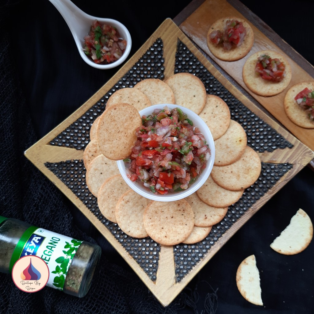 Pico de gallo also known as Salsa Fresca, Salsa Cruda or Salsa Bandera is uncooked or raw salsa, commonly used in Mexican cuisine. It is traditionally prepared from tomato, onion, serrano peppers, salt, lime juice and cilantro. Pico de gallo can be used in the same way as cooked salsa. Pico de gallo literally means “beak of rooster”. It is said it was eaten by pinching between thumb and finger making the shape of a rooster’s beak. That’s why salsa is known as Pico de gallo. Salsa Bandera means ‘flag sauce’, this is because the colour of tomato,onion, green chilli, cilantro are reminiscent of the colours of Mexican flag – Red ,White, Green. Whatever the name we say, but this spicy, tangy and delicious sauce tastes best with nachos or various chips and some mexican dishes.