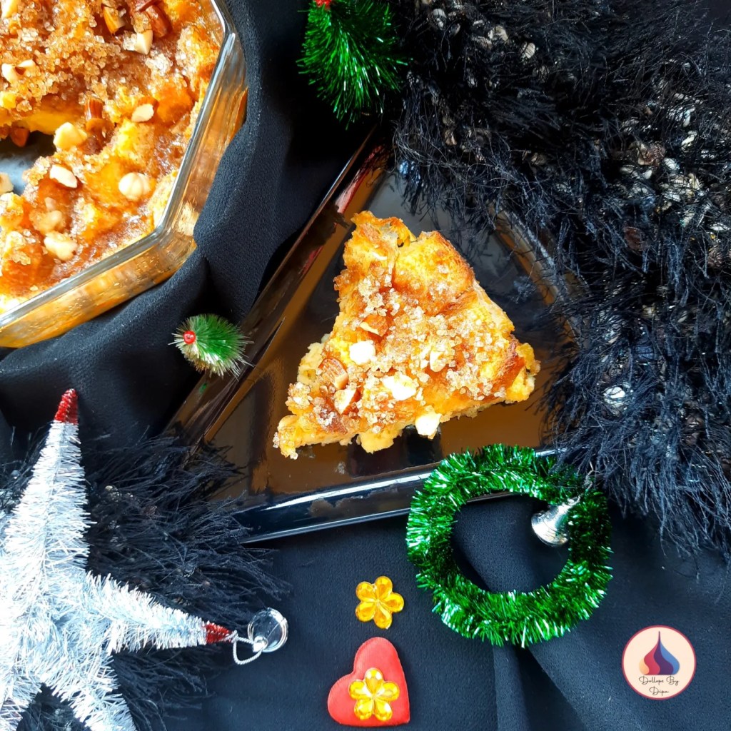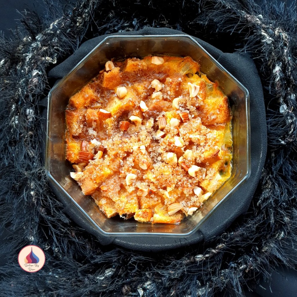 I have prepared eggless Indian style bread pudding with custard. Basically British dessert but in Indian style bread pudding and it happens to be a hot favourite at Mumbai’s Irani restaurants. This baked and flavourful dish tastes best when served warm or hot and that’s why it is perfect for winter.