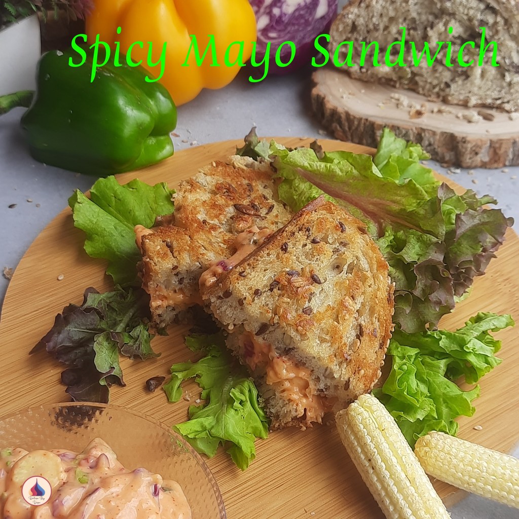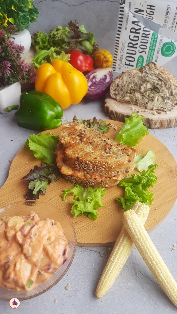 I have prepared veggie loaded spicy mayo sandwich using the sourdough.