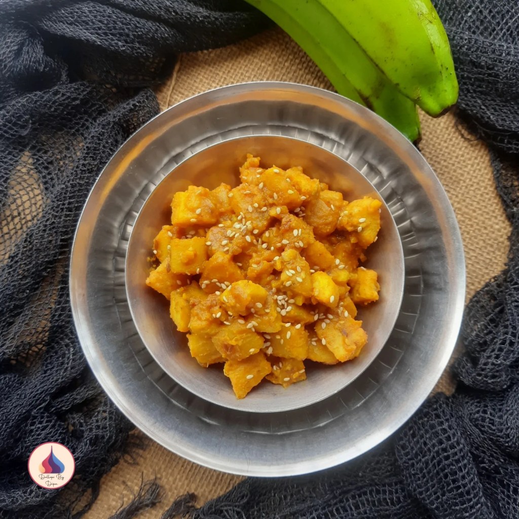 Today I have prepared dry sabzi using nendran banana. I prepared it without onion, garlic, tomato or any green or fresh spices aka Jain version.