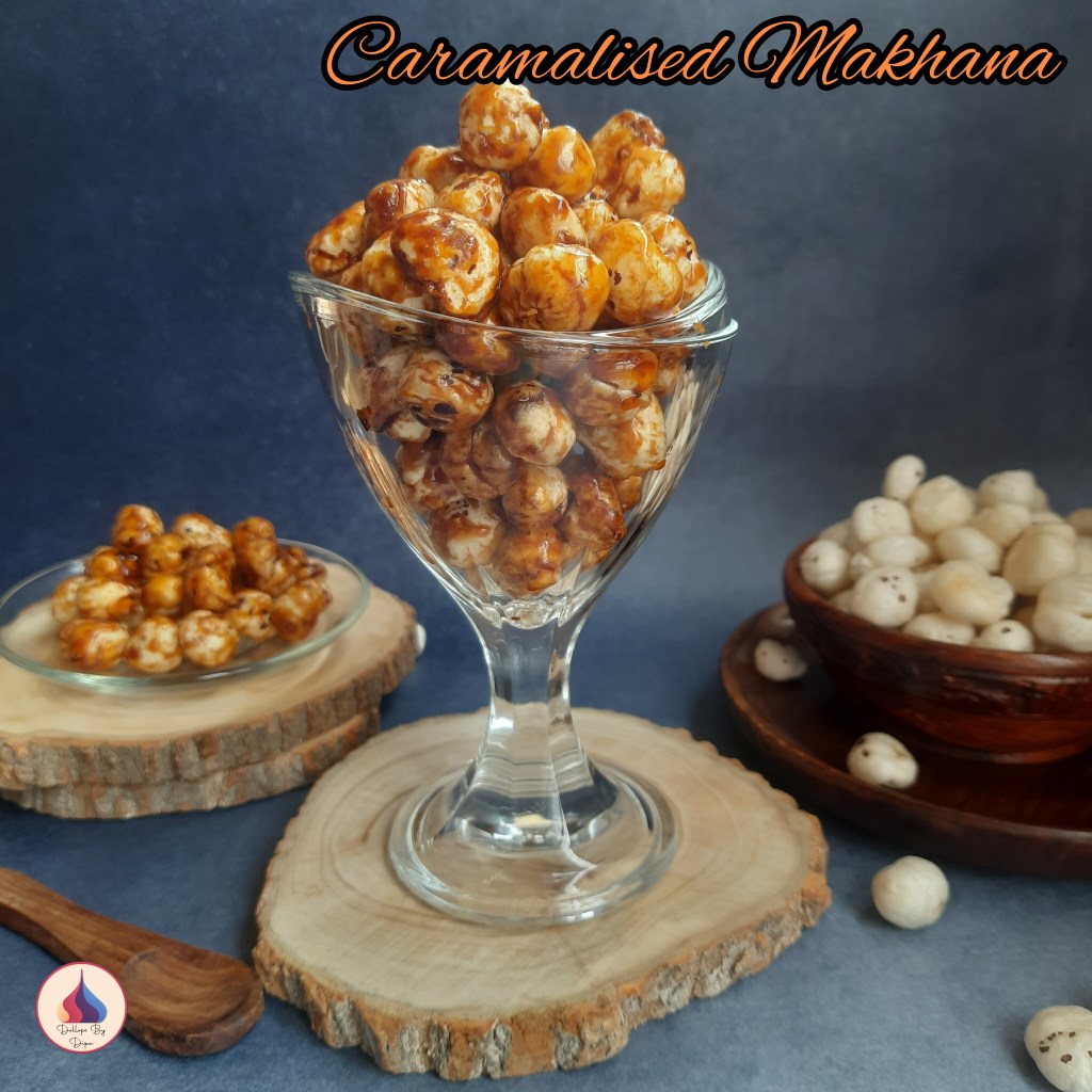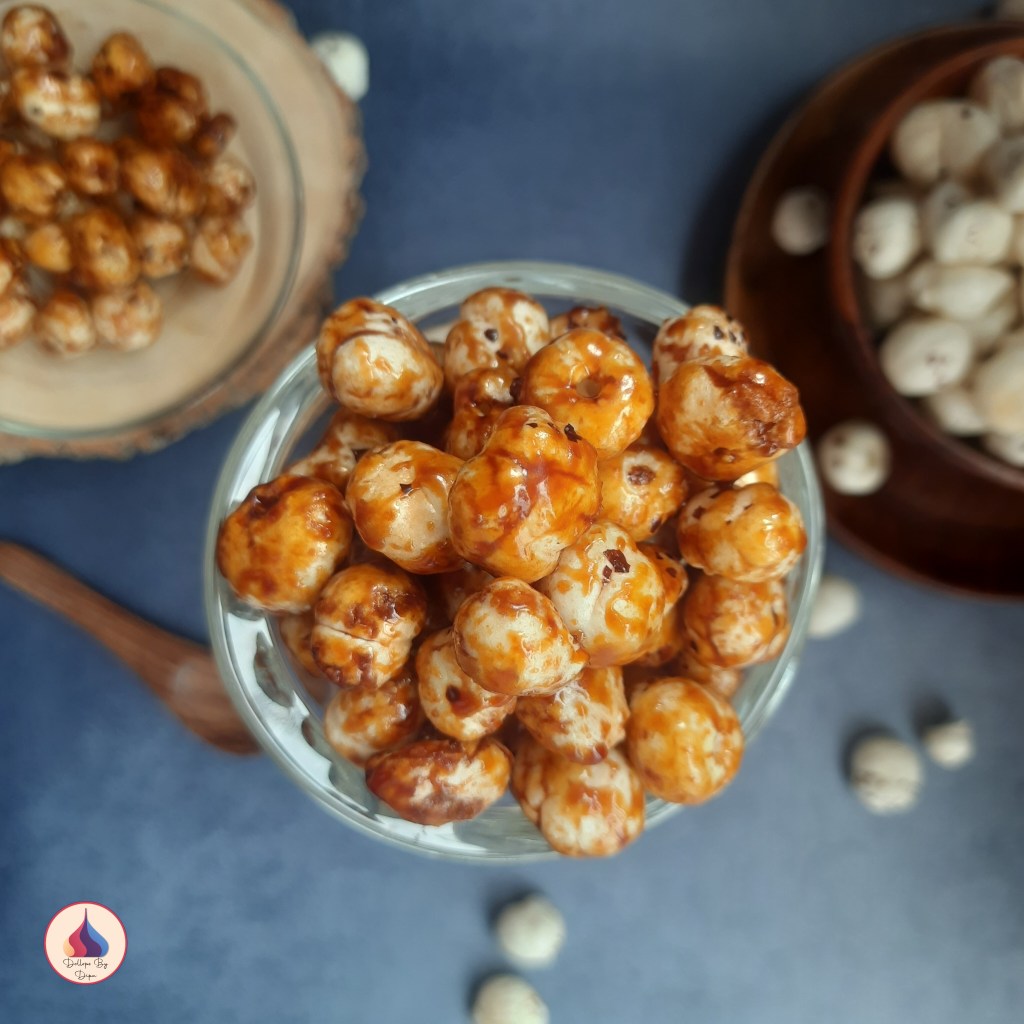 - Once it melts and starts bubbling ads makhana and mix well so each makhana coated well.