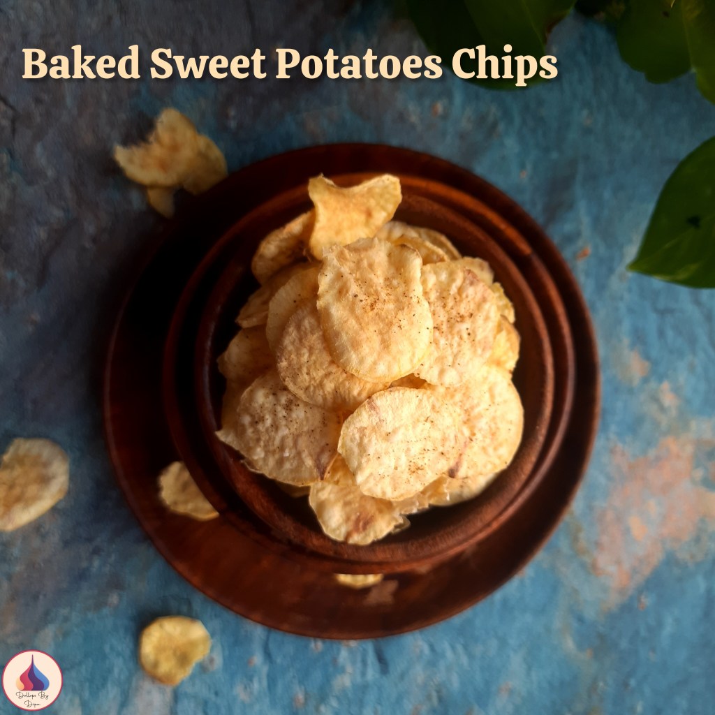Sweet potatoes are used in various recipes from soup to dessert. There are many fasting recipes also prepared using sweet potatoes. Sweet potato chips are one of the popular recipes. I have baked these chips instead of deep frying them but they are still perfectly crunchy.