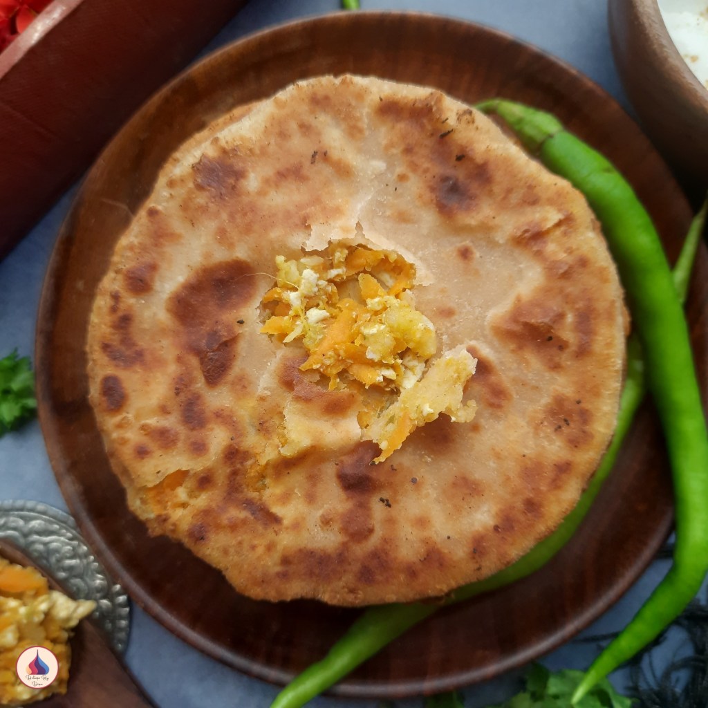 Today I have prepared a stuffed paratha which are loaded with goodness of carrots and tofu, basic spices enhances the taste of the paratha. Though it is just a paratha but because of its stuffing, they are filling and satisfying and can be consumed with any meal along with curd/raita.