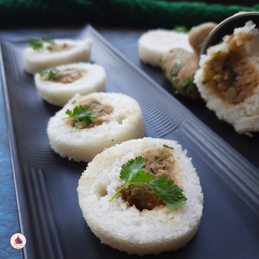Soft and spongy idlis are a popular delicacy from the South Indian Cuisine. This popular snack is consumed as breakfast as well as a meal. Apart from making it in a modern Idli maker, Idlis are prepared in various leaves like jackfruit leaves, banana leaves, lotus leaves, therali leaves etc. In Karnataka, idlis were traditionally steamed in jackfruit leaves and these idlis known as Khotto or Kottiage and in Konkan known as Gunda idlis. In such method, uniform sized leaves are folded and interwoven with tiny sticks in a cup shape. Then idli batter is poured and steamed. In this method idli batter should be little thicker than usual to avaoid seeping between the leaves. But in this modern era, it is hard to get fresh leaves for those who lives in Urban places, so this glass idli/tumbler idli is invented as an alternative of this Udipi style Khottos. In this method the idli batter is filled into the glass or tumbler and then steamed. Even who don’t have idli maker can prepare idlis like this. Today, I have prepared stuffed glass idlis.
