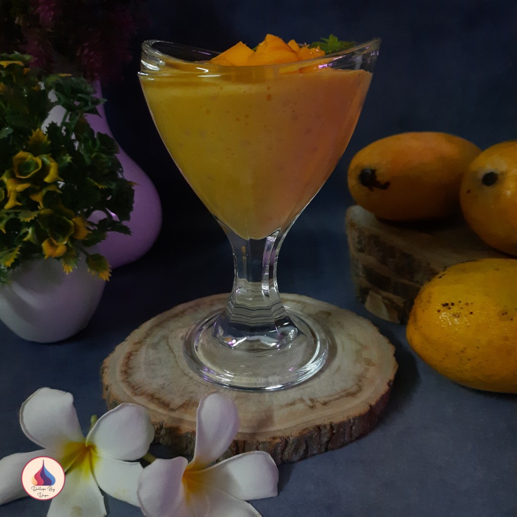 - Add tapioca pearl in blended mango puree. Mix well and refrigerate it for some time.