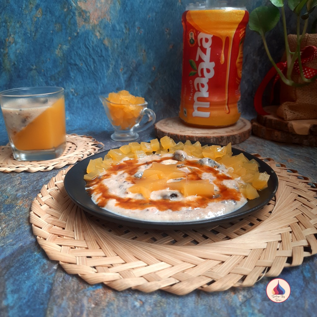 Desserts are the main part of any cuisine. Various desserts – from ice creams to kulfis , puddings to pies, souffles to cakes are largely consumed across the globe. Maaza – a popular mango drink has won people’s heart since decades. Today, I have prepared a fusion dessert using maaza. I have combined two flavours and two desserts.