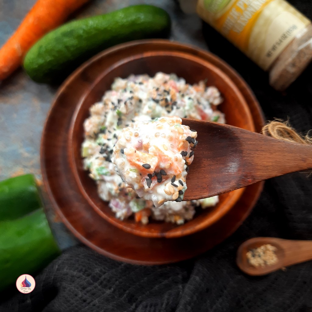 This Quinoa salad is prepared along with hung curd and veggies and it is health and satisfying salad that one can consume as a mini meal.
