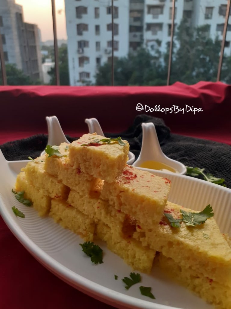 This popular Gujarati snack is also known as ‘Khata Dhokla’ and ‘live dhokla’ too. ‘khata’ means sour, this dhokla is sour in taste so also called as ‘ Khata dhokla’. From last few years Dhokla has become street food. Dhokla is prepared live in a large steamer cum dhokla maker on road side or even in many occasions and hence known as ‘Live dhokla’.