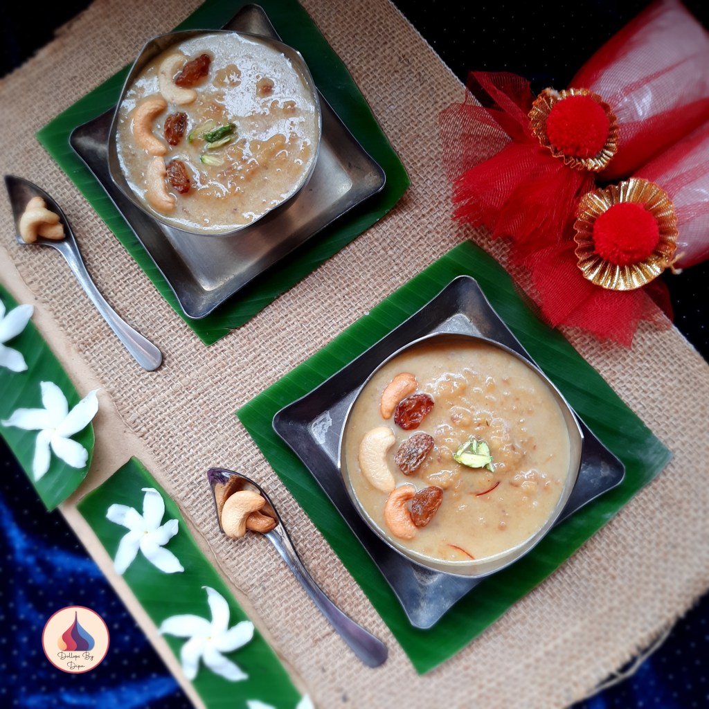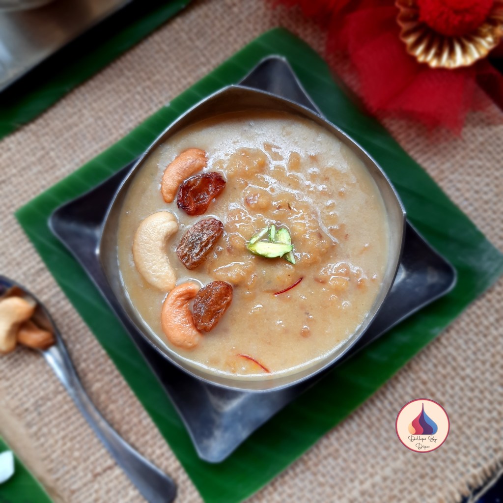 - Top the payasam with fried cashew and dryfruits. Serve warm or cold as per your choice.