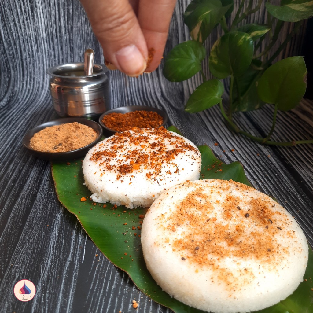4. Top up hot idlis with drizzle of ghee and sprinkle podi and serve hot