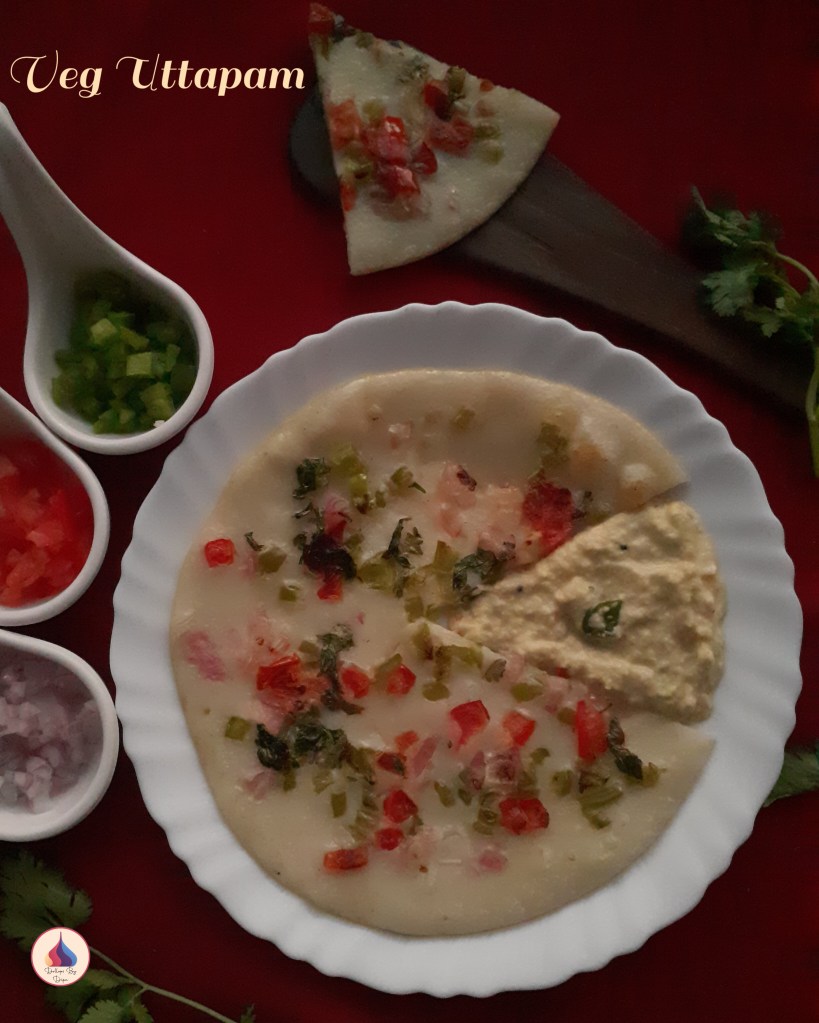 Uttpam, Uthapam or Oothpam is a type of dosa from the South Indian Cuisine. This popular South Indian snack is prepared with fermented rice and lentil batter and topped with various vegetables, herbs and spices. Uttapam is naturally gluten free , vegan, high protein meal and perfect breakfast, tiffin box recipe served with chutney, sambar, podi etc. Unlike a typical dosa which is crispy and thin, uttapam is thicker, little fluffy and with toppings.