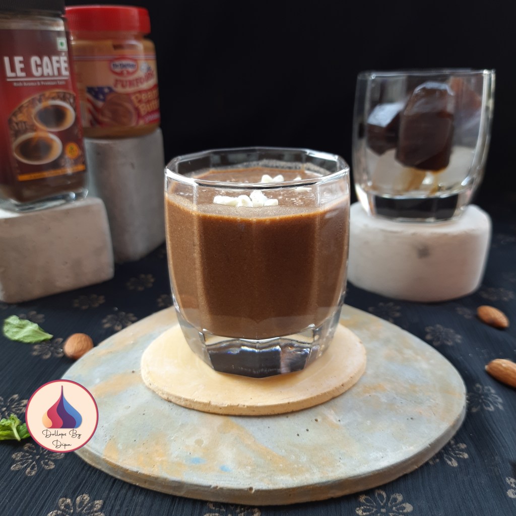Today, I have prepared a delicious and healthy smoothie which is perfect for not only breakfast but also a good option for an evening snack. It contains coffee, banana, almond powder, peanut butter, cocoa powder, honey amd milk.