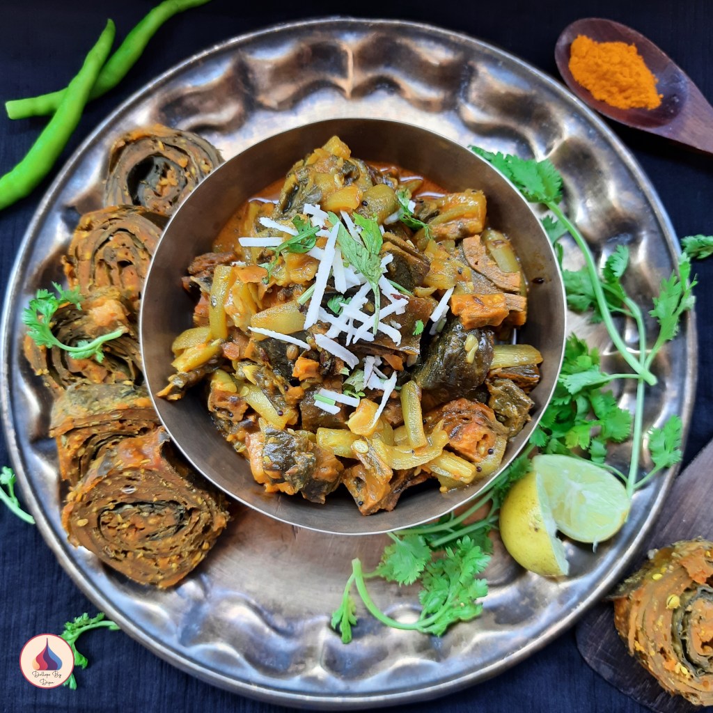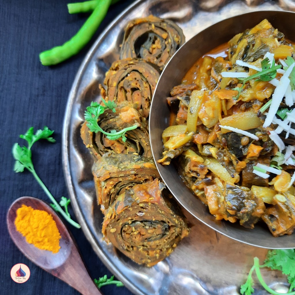 Turiya Patra nu Shak is a popular Gujarati delicacy prepared with Turiya/Turai/ridge gourd and patra (colocasia leaves battered, steamed rolls). Though it seems like an unusual and uncommon combination, it tastes delicious and is very common in Gujarati household. This delicious sabzi is one of the most-served delicacy at Gujarati weddings.