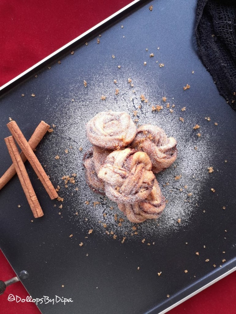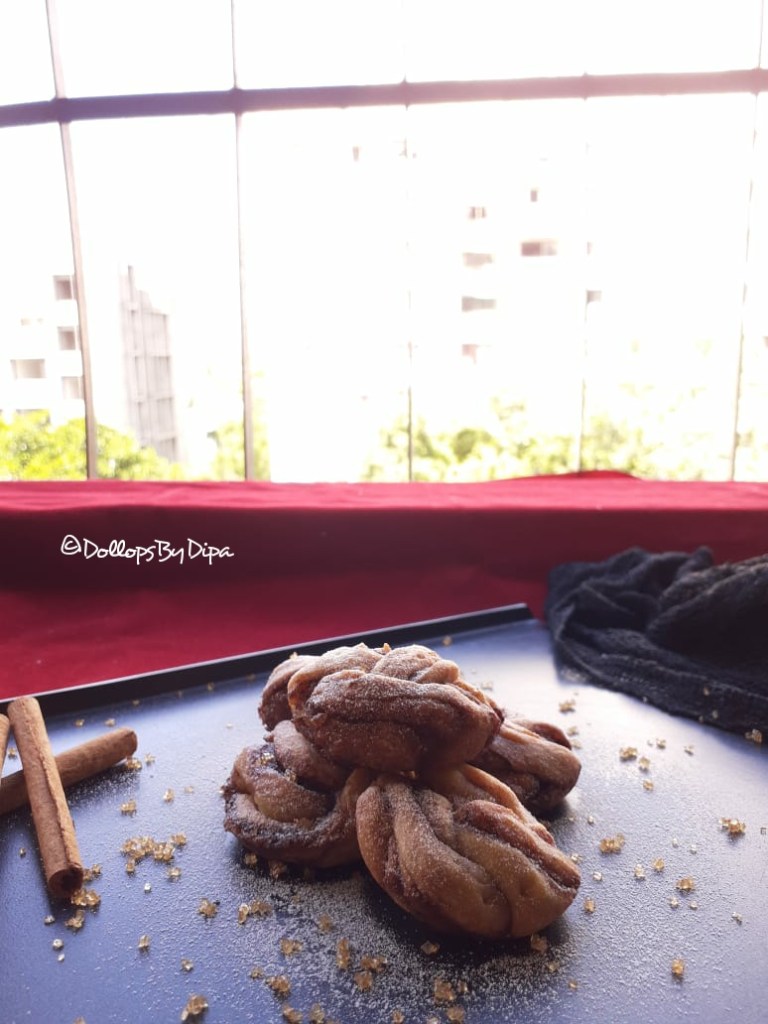 Cinnamon rolls – as it’s name suggests are cinnamon flavoured pastry buns. History says that these aromatic buns with oozing icing with aroma of cinnamon are originated in Sweden and Denmark. 4th October is celebrated as International Cinnamon Rolls Day. Dig in some more details about Cinnamon Rolls – it is commonly served in Northen, Europe and North America. In Sweden it is called Kanelbulle and in Denmark it is known as Kanelsnegl. Generally cinnamon rolls are prepared using yeast and eggs. Here is egg free and yeast free recipe with different shape.