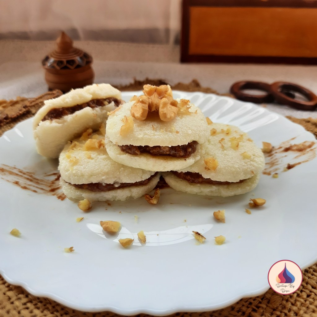This luscious sweet is stuffed with mawa/khoya stuffing with cream layer to make it more rich. Here I have prepared Malai chop with little twist. I have added Nutella and walnuts in stuffing along with khoya.
