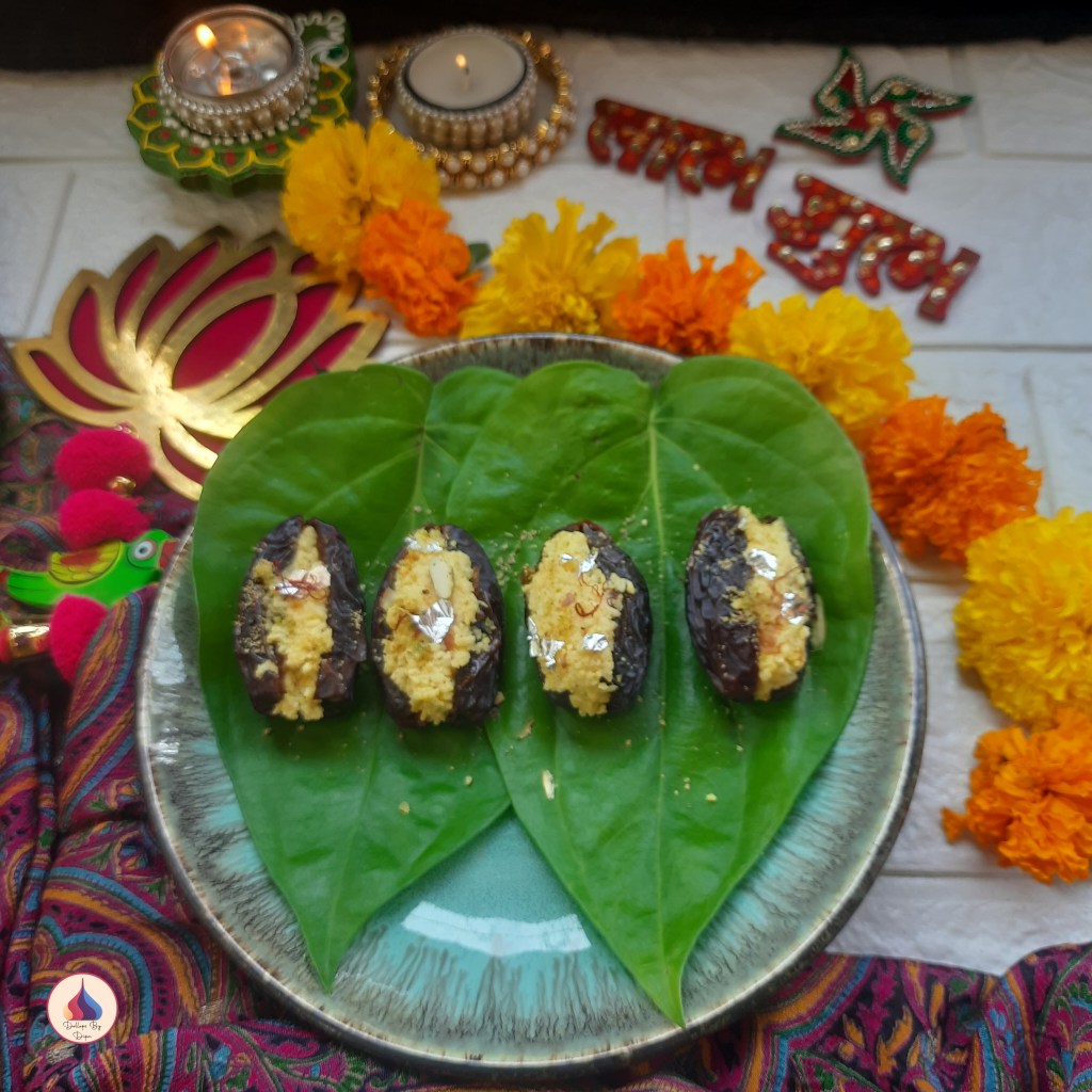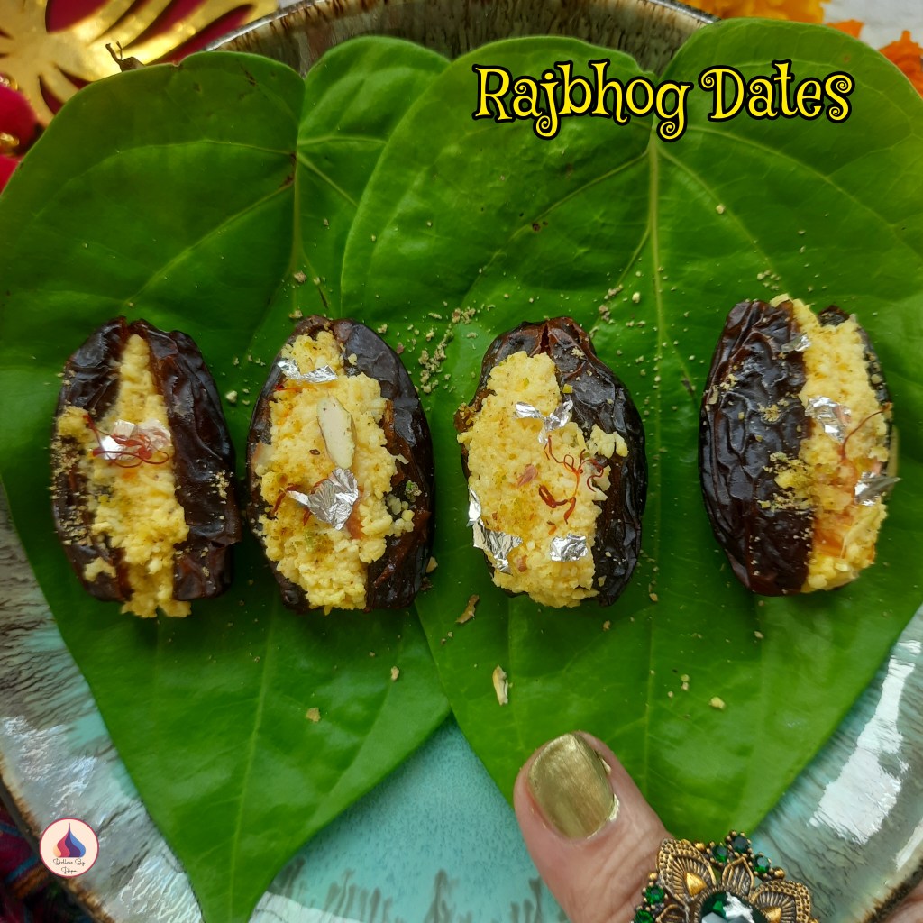 Rajbogh Dates are a fusion dessert that combines a natural sweetness of Medjool Dates with creamy chena filling. This delicious and healthy dessert is the best option for festivals. Saffron, cardamom, nuts elivates the taste of this sweet to the next level of richness.