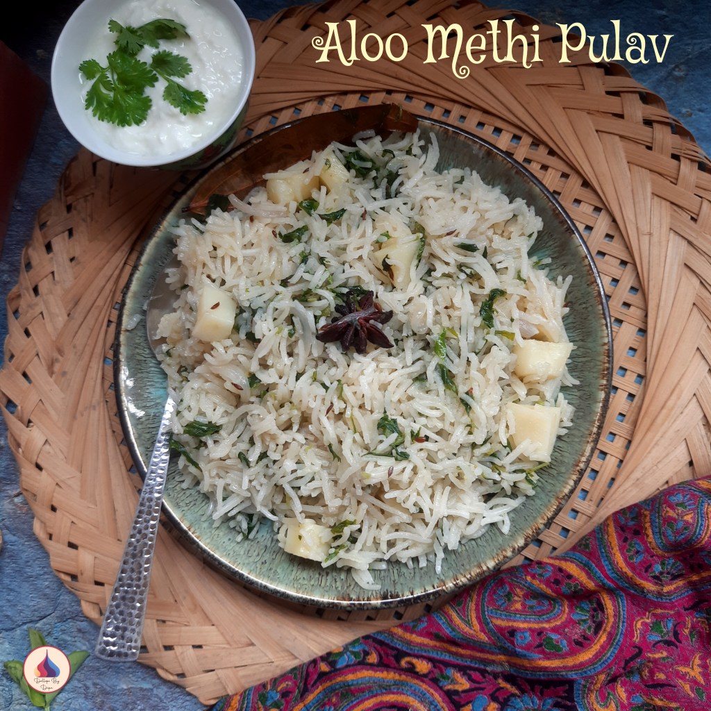 Aloo Methi Pulav is an easy, quick, and delicious rice recipe. The use of methi leaves (fenugreek leaves) adds depth to this pulav. With minimal spice usage, the flavor of the fenugreek leaves takes center stage.