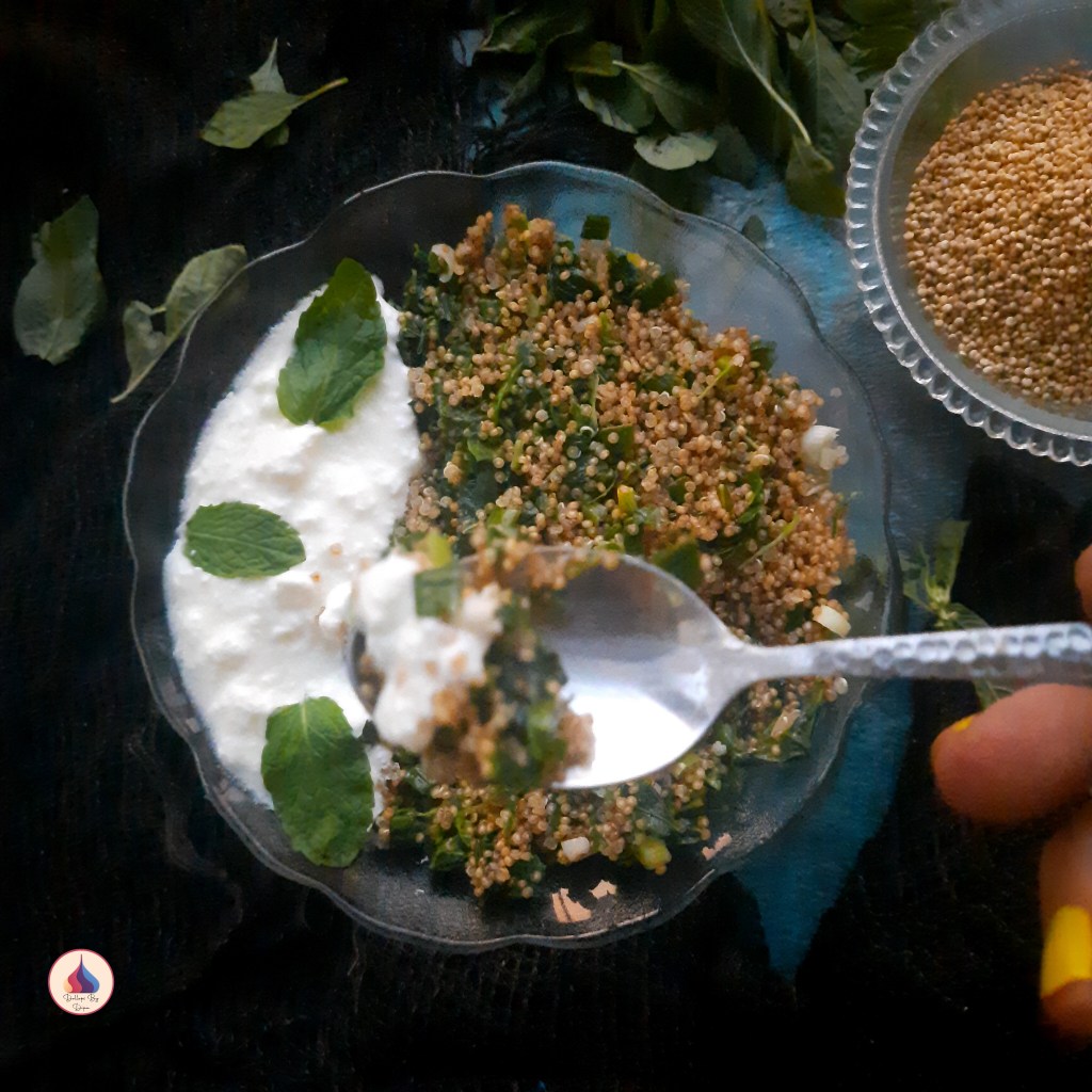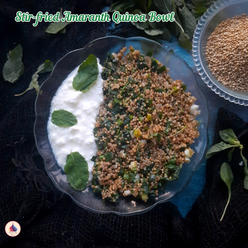 - Serve this healthy and wholesome Stir-fried Amaranth Quinoa bowl with curd.