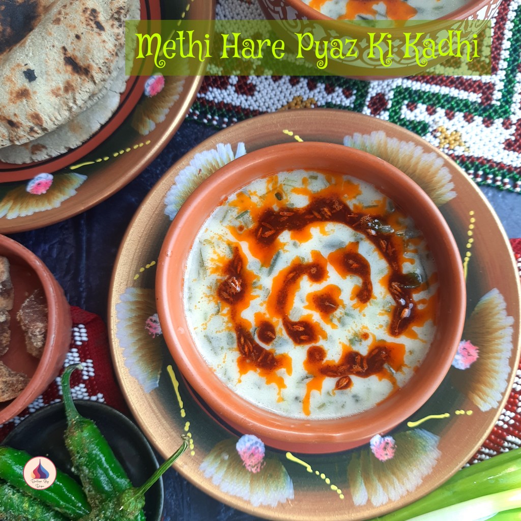 METHI – HARE PYAZ KI KADHI (Fenugreek Leaves – Spring Onion Kadhi)