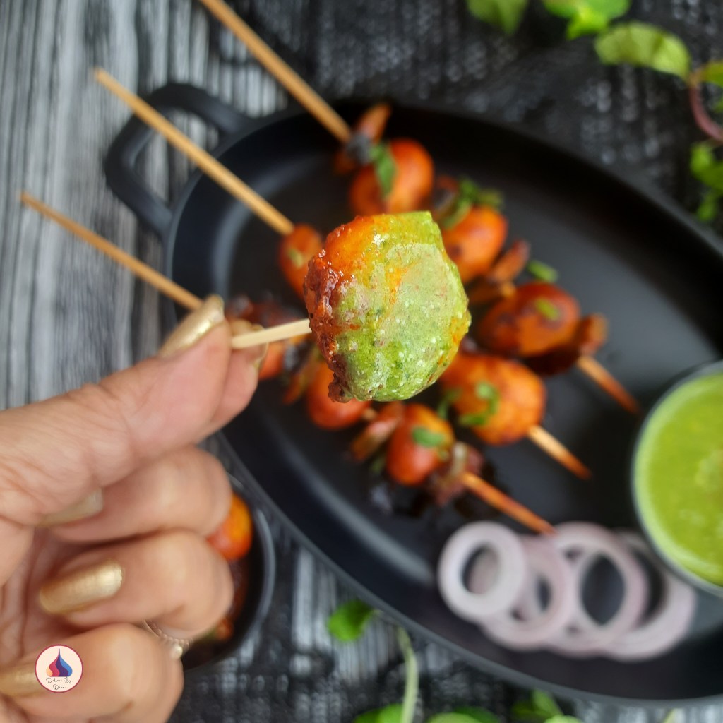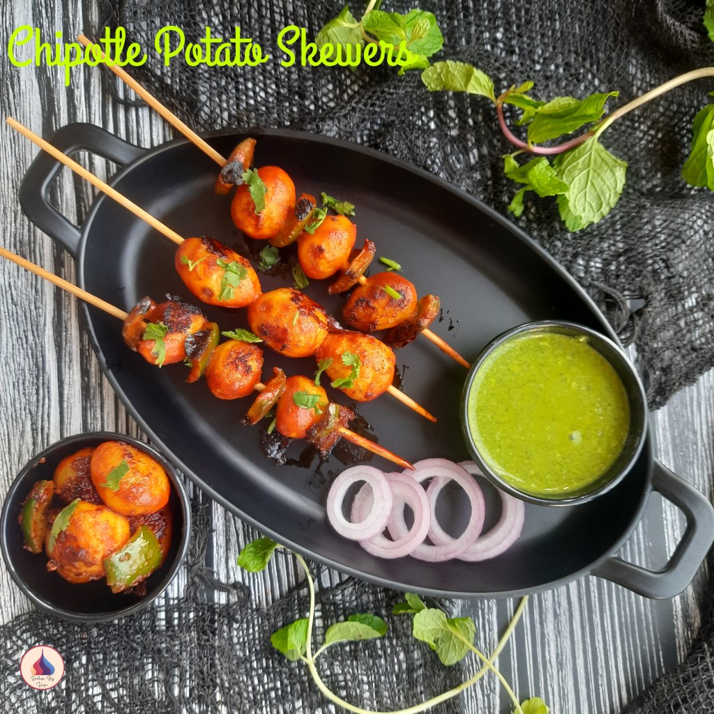 Here, I’ve marinated parboiled potatoes in Chipotle seasoning and grilled them. These deliciously spicy potato bites make a perfect starter for any party.