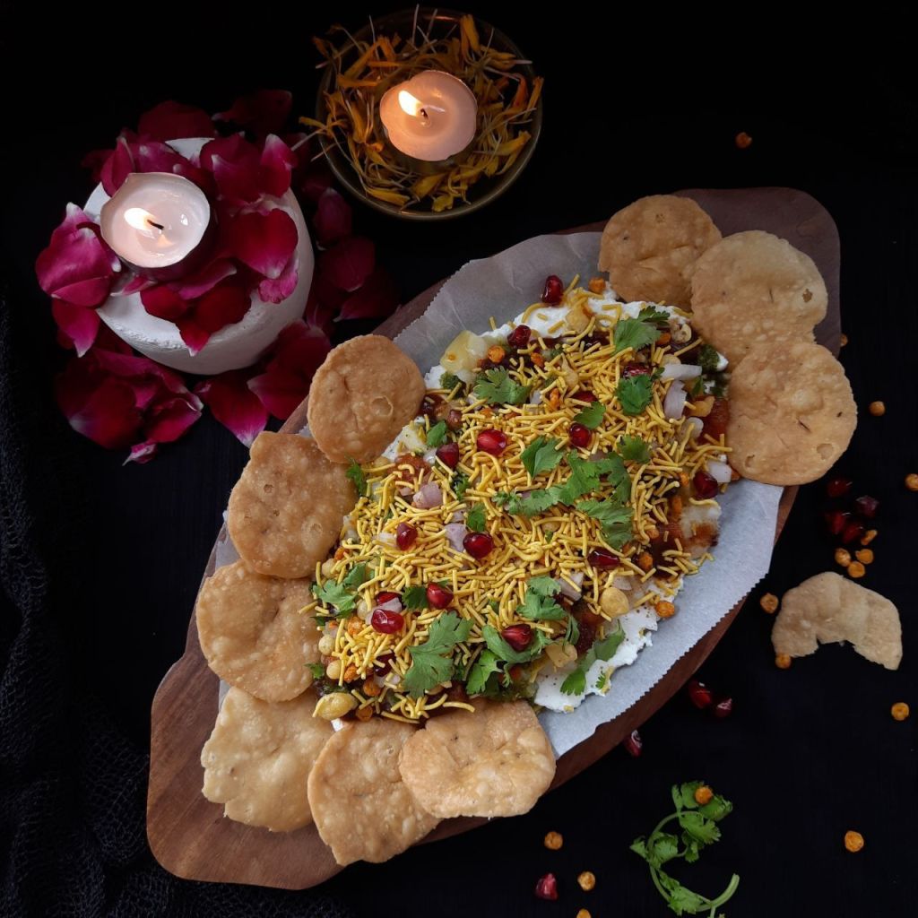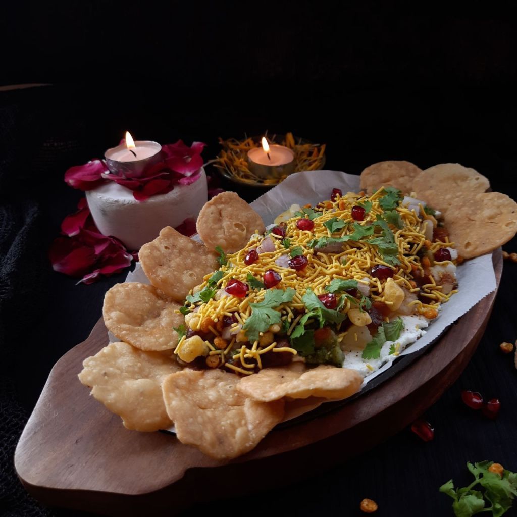 A chaat board is a trendy way to serve and enjoy a variety of Indian street food-style snacks, known as chaat items. This platter or board offers a selection of popular Indian snacks, including savory and spicy treats, crunchy fried delights, and refreshing yogurt-based sides. The board typically includes a variety of textures, flavors, and temperatures to create a delightful and interactive snacking experience.