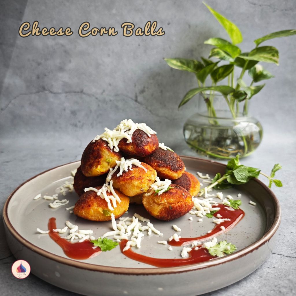 Enjoy hot cheese corn balls with tomato ketchup, schezwan chutney, or creamy mayo dip.