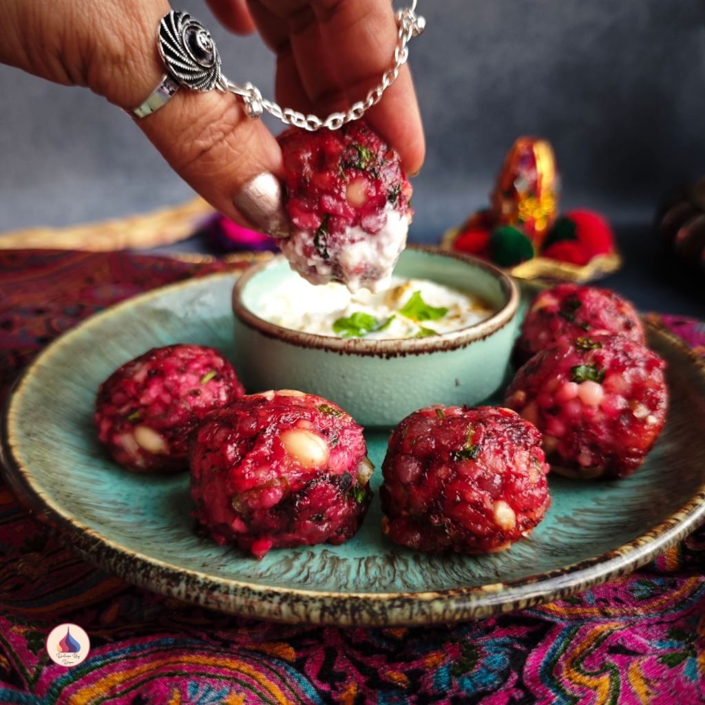 The combination of soaked sabudana, mashed potatoes, earthy beetroot and roasted peanut powder gives a wonderful texture and natural pink colour. Balanced with green chillies, lemon juice and a mild sweetness, these bite-sized appe are perfect for fasting days, evening snacks or festive appetisers.